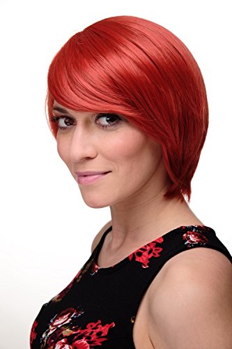 WIG ME UP - Parrucca Capelli corti Donna Rosso Rosso acceso Mix di rosso Liscia Frangetta Riga laterale circa 25 cm 6082-137