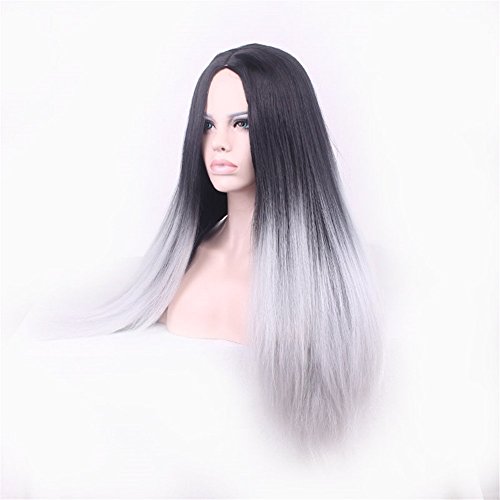 Parrucca di capelli lunghi e lisci, con punte chiare (da nero a grigio), per feste, cosplay, carnevale, Halloween e altri eventi