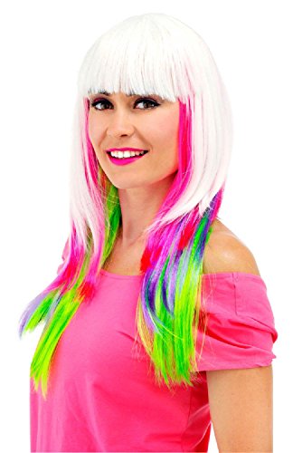 Parrucca capelli lunghi con sfumature arcobaleno.