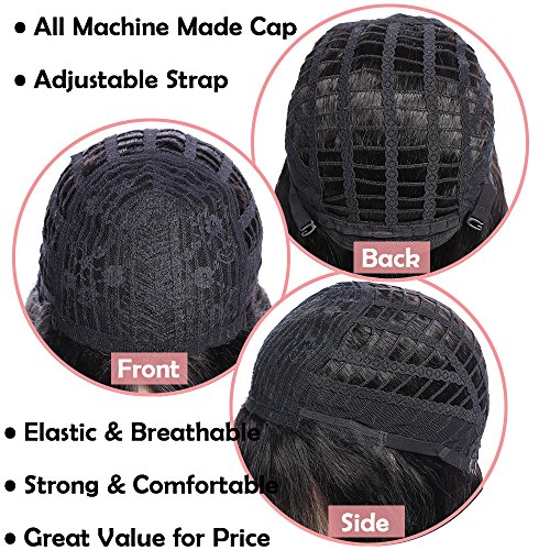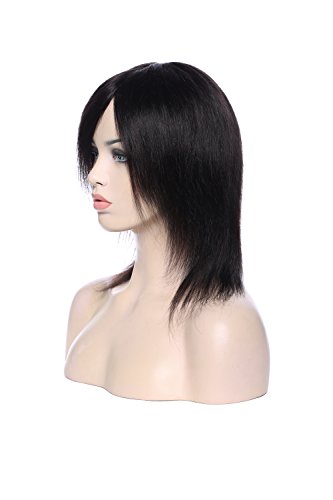 Parrucca con capelli umani, per donne di colore, capelli brasiliani, Lisci #1B, nero naturale