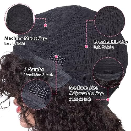 Facile da installare: parrucca riccia crespa senza pizzo anteriore realizzata a macchina, cappuccio medio con cinturino regolabile e 4 pettini, resistente, facile da regolare, comodo da indossare. Parrucca senza pizzo senza colla, facile da installare, adatta ai principianti.