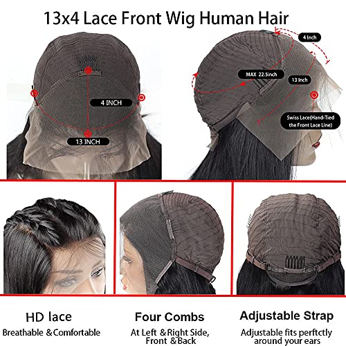 【DETTAGLI PARRUCCA ANTERIORE IN PIZZO 13x4】: Dimensioni medie (22 - 22,5 pollici). Il cappuccio per parrucca frontale in pizzo ha 4 pettini e due cinghie di regolazione possono essere intrecciate in una posizione fissa, può essere regolato su diverse dimensioni della testa e non è facile cadere, facile e conveniente.