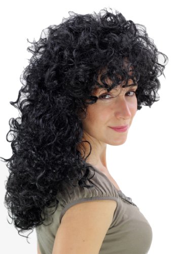 Parrucca da Carnevale, Latina, con lunghi ondulati voluminosi ricci neri.