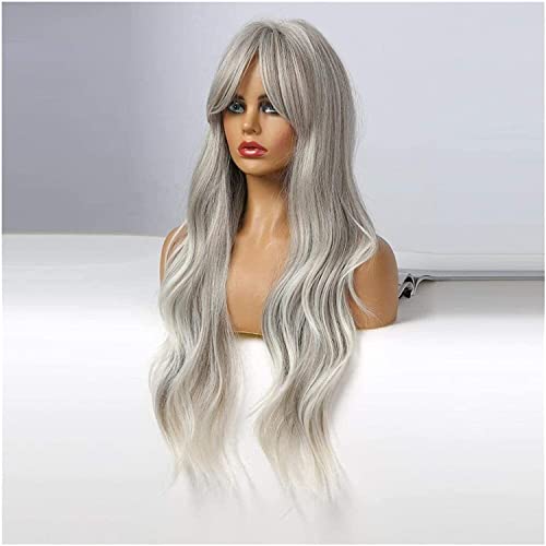 YCXF Parrucca Copricapo Lungo Ondulato Grigio Ash bionda Bianca Ombre Parrucche for Donne Parrucca di Capelli Sintetici Naturali con Botti for Il Partito Cosplay Giornaliero Facile da Pulire