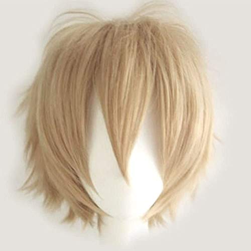 Parrucca corta bionda, con capelli lisci e soffici, unisex, per cosplay, feste in costume, Halloween