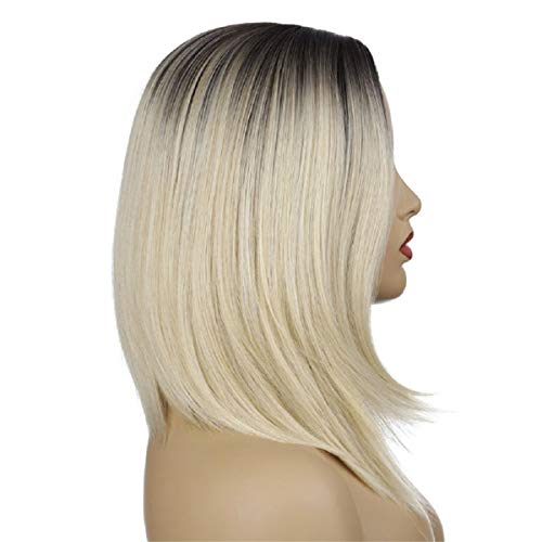 Parrucca corta Bob bionda ombre parte laterale resistente al calore sintetico pizzo frontale parrucca per donne bionda radice scura taglio di capelli corto legato a mano parrucca completa
