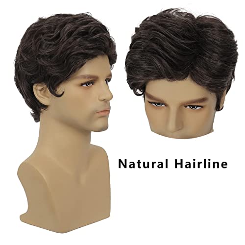 Parrucca corta per uomo Parrucca riccia a strati marrone Parrucche sintetiche per capelli per costumi di Halloween con cappuccio per parrucca