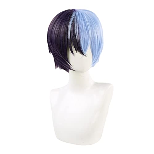 Parrucca Cosplay Anime, Capelli Corti Sintetici Resistenti Al Calore Misti Blu Viola per Aoyagi Touya Giochi Ruolo Parrucche Halloween con Cappuccio per Parrucca