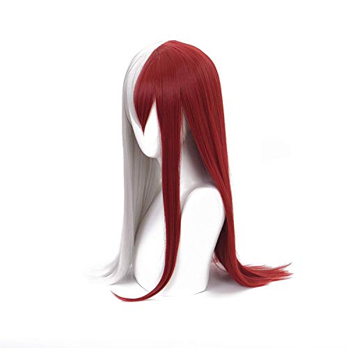 LZT 65cm Parrucca Cosplay Anime Femminile Lunga Diritta in Argento Rosso Per My Hero Academia Shoto Todoroki Parrucche Sintetiche Con Cappuccio Parrucca Gratuito