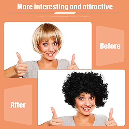 Parrucca Pop Afro Parrucca da Discoteca Parrucca Corta Riccia con Frangia Parrucca in Stile Africano Parrucca da Pagliaccio per Feste di Halloween Accessori per Adulti, Uomo, Donne (Nero)