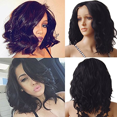 Parrucca da donna con capelli sintetici corti, con pizzo frontale, ondulato, ondulato, in pizzo, per tutti i giorni, per feste