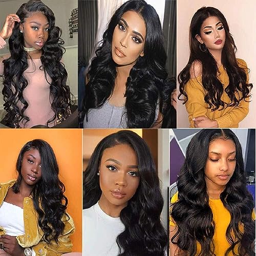 Parrucche di pizzo vantaggio: parrucche di capelli umani a onda del corpo piene e spesse, parte libera, può fare qualsiasi parte senza preoccupazioni, può essere tinta, sbiancata, premedicata, ondulata e ridisegnata come i tuoi capelli, può fare alta coda di cavallo e crocchia.