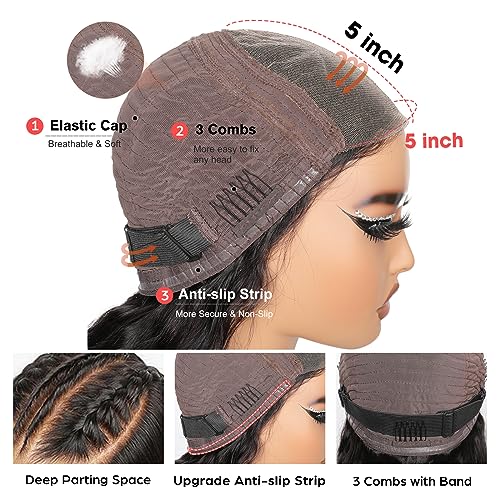 【Deep Wave 5 X 5 Lace】: parrucche da donna con capelli veri 5 x 5;