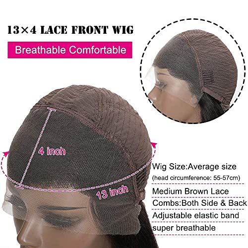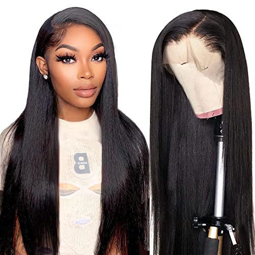 Parrucca Donna Capelli Veri Umani 13x4 Lace Front Wig Straight Human Hair Wigs 180% Density Parrucca Nera Liscia 70cm
