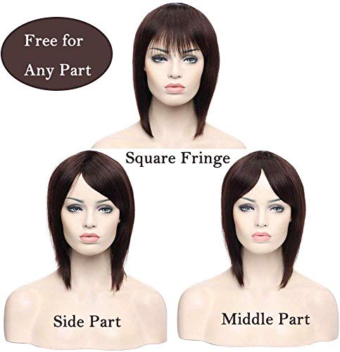 SEGO Parrucca Donna Capelli Veri Umani Naturali Taglio BOB Senza Lace Capelli Mossi/Lisci 100% Human Hair Nero Naturale/Castano