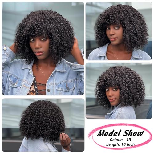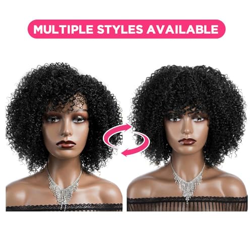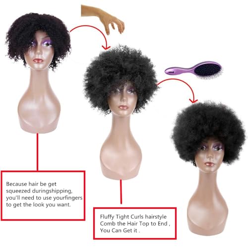 Densità dei capelli: densità del 180%. Nuovo design parrucca ricci afro crespo, abbastanza pieno, colore naturale, senza parrucche anteriori del merletto. La confezione include: parrucca afro arricciata con frangia e 1 fascia (colore casuale).