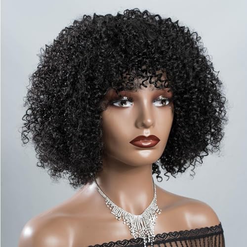 Parrucca Donna Capelli Umani Veri Parrucche Capelli Veri Ricci Pixie wig Afro Curly Human Hair Wigs With Bangs 14 Pollici Brazilian Wigs Human Hair 180% Density