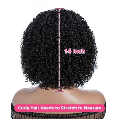 Parrucche per capelli umani con frangia corta Afro Kinky Curly Parrucche è un nuovo design, questa trama riccia molto speciale, se vuoi un effetto di capelli lisci da 14 pollici, ti consigliamo di scegliere questa parrucca da 16 o 18 pollici che può soddisfare le tue esigenze.