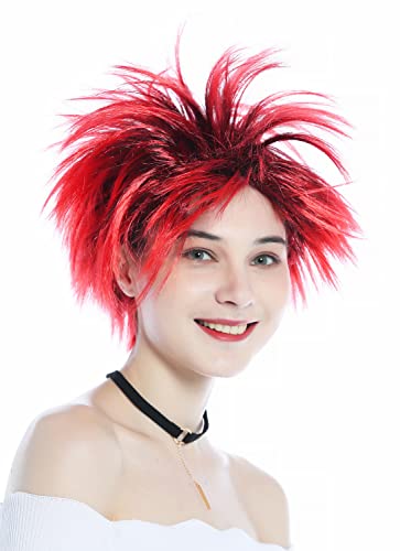 WIG ME UP-91819-B-ZA13-ZA103 Parrucca Donna Uomo Carnevale Halloween Selvaggia Ciocche sparate in aria Nero Rosso Punk Gothic Troll Diavolo