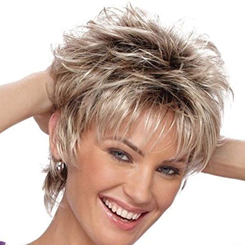 Parrucca donna, parrucca donna corta, parrucche corti parrucche bionde capelli marrone strato gonfio resistenti al calore pezzetti per le donne uso naturale femminile naturale (biondo ash)