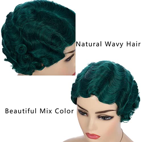 Parrucca Donna Corta Riccia Verde Sintetica 1920 Parrucca Nuna Finger Wave Pixie