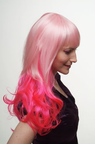 Parrucca da donna stravagante: nel suo colore Bonbon riporta allo stile Gotico, Wave e al Punk. Questa parrucca rosa e bionda ha capelli lunghi e ondulati. Codice colore: TF2315HT2333. Lunghezza: circa 60 cm.