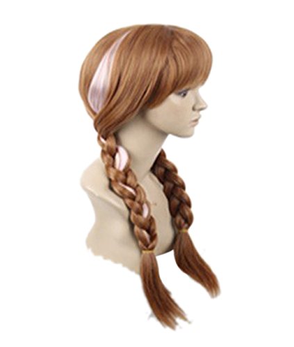 Parrucca da donna con doppia treccia da principessa Anna marrone con cappuccio