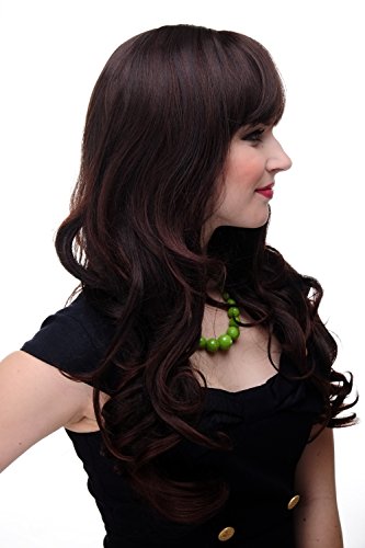 WIG ME UP - Parrucca Donna Grossi e robusti Ricci Capelli Ondulati con Frangetta Liscia Castano Mix di Bruno cupo-Mogano circa 65 cm 285-2T33