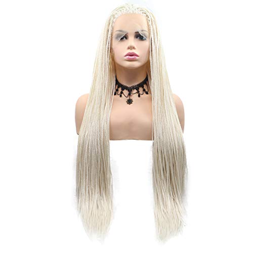 Parrucca da donna intrecciata con parrucca sintetica bionda bianca 60 # bionda con pizzo frontale lungo resistente al calore, 66 cm