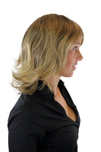Parrucca da donna pazzesca enorme con meches alla moda castano-biondo, di fiibra sintetica di alta qualità. La parrucca arriva alle spalle scalata con punte realisticamente ondulate. Codice colore: 8T124. Lunghezza: circa 45 cm.