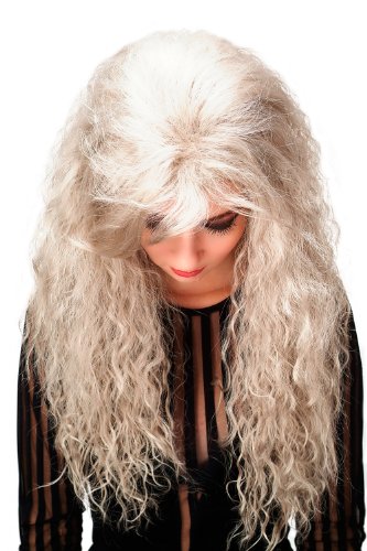 Parrucca da donna molto lunga e voluminosa- nel suo grigio deciso tra vamp e strega. Lunghezza: circa 70 cm. Colore: 101.
