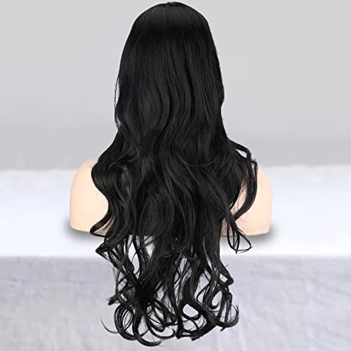 Parrucca da Donna con onde Nere Parrucche Riccia Lunga Ondulata a Sezione Centrale Parrucche Ondulate Naturali Parrucche Uso Quotidiano 26 Pollici with 1pc Wig Cap