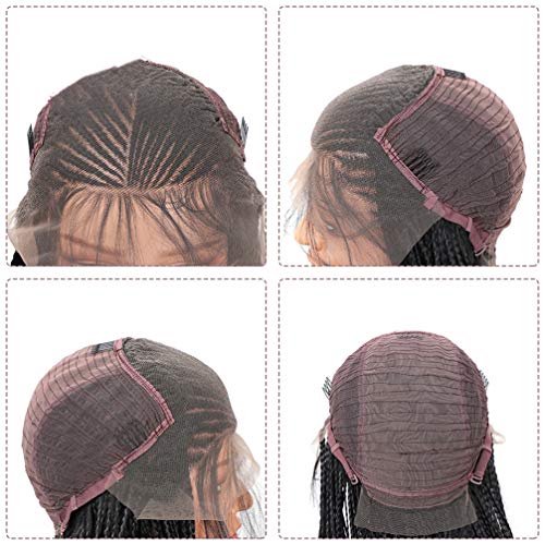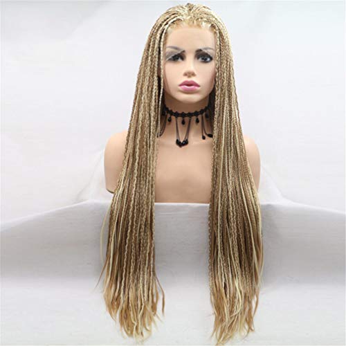 Parrucca Frontale In Pizzo sintetico Parrucca treccia lunga scatola nera da donna Parrucca bionda micro treccia Parrucca anteriore per resistente al calore dei capelli del bambino,28 inches