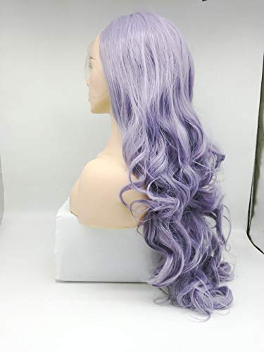 Parrucca Lilla Pastello Colore Misto Viola Lavanda Capelli Sintetici Per Le Donne Capelli Capelli Naturali Ondulati Festa Parrucca Lungo Pizzo Frontale 55,9 cm