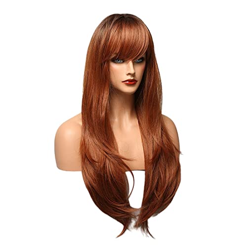 Parrucca Lunga Color Rame Rosso Castano Ramato Con Bang ATAYOU Parrucche Lunghe E Dritte Allo Zenzero Per Le Donne Parrucca Sintetica In Rame Per Cosplay Per Feste Quotidiane