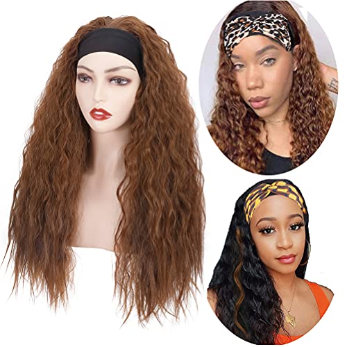 Parrucca da 60 cm lunga headwarp parrucca sintetica con fascia ondulata di mais parrucca ondulata ricci regolabili testa piena updo turbante parrucche Ramato chiaro con 2pcs fasce