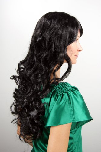 Parrucca nera con capelli lunghi volumiosi e ricci