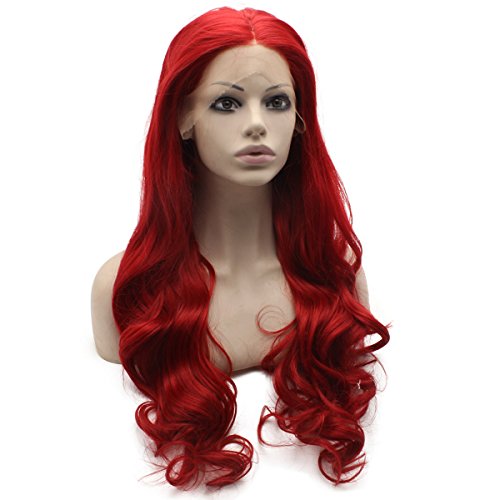 Parrucca lunga e mossa, legata a mano con tulle frontale, capelli sintetici, colore: Rosso.