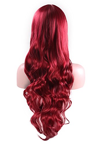 Parrucca lunga e riccia rossa per donne cosplay partito Halloween costume parrucche sintetiche resistenti al calore 80 cm (rosso scuro)