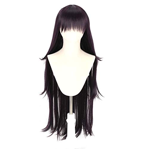 Parrucca lunga nera viola a strati anime cosplay Mikan Tsumiki per Danganronpa donne ragazze party parrucche 100 cm
