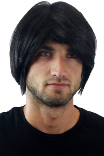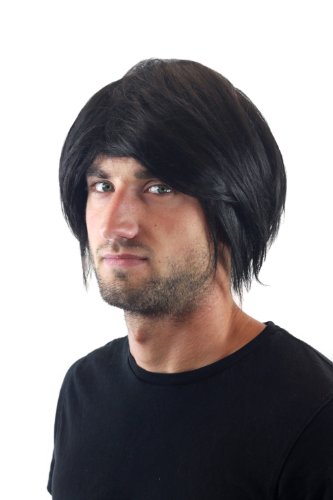 Parrucca da uomo, cool e alla moda, con capelli di colore nero che arrivano alle spalle e riga laterale. Codice colore: 18. Lunghezza: circa 20 cm.
