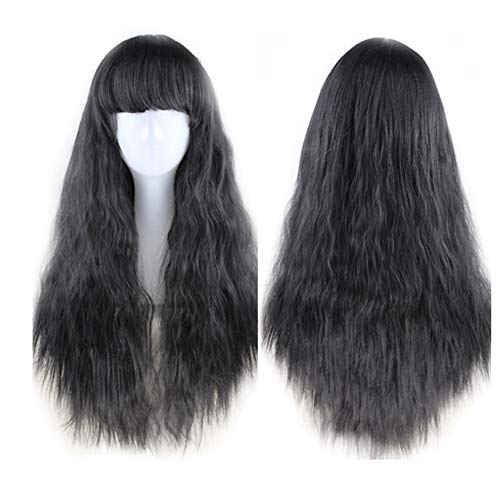 Parrucca piena di capelli ondulati lunghi ricci da 65 cm per donne di moda costume partito anime cosplay - geshiglobal nero naturale