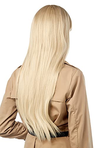 Parrucca per ragazze e donne biondi lunga parrucca con pony capelli lisci capelli sintetici cascata taglio a gradini