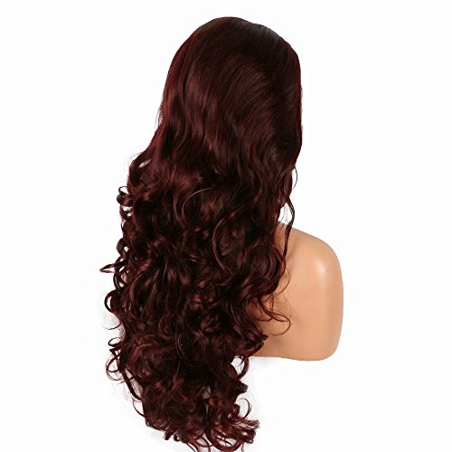 Parrucca sintetica con capelli ricci color mogano per Drag Queen, resistente alle alte temperature, con pizzo frontale, legata a mano, ideale per feste, lunghezza 56 cm