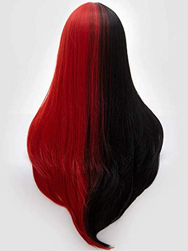 2. Tipo di parrucca: la migliore parrucca nera e rossa con capelli sintetici lunghi e lisci per un look alla moda. Nota bene: il colore può essere leggermente diverso a seconda dei monitor.