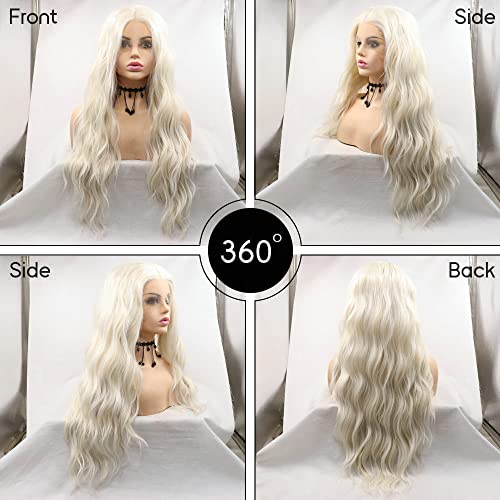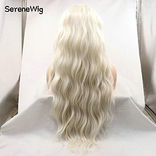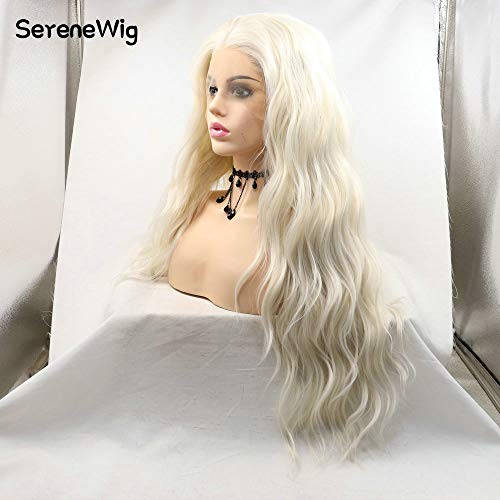 Parrucca sintetica con pizzo frontale, colore marrone naturale/biondo/rosso, da donna, ondulata lunga (colore naturale biondo bianco 60#)