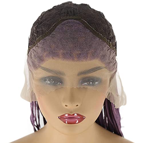 Parrucca con trecce intrecciate con capelli per bambini, capelli lunghi viola intrecciati realistici a mano con pizzo frontale, per donne nere, trecce pre-pizzicate sintetiche, africane di ricambio