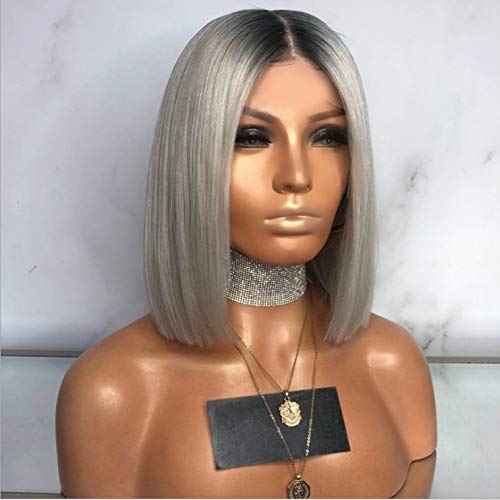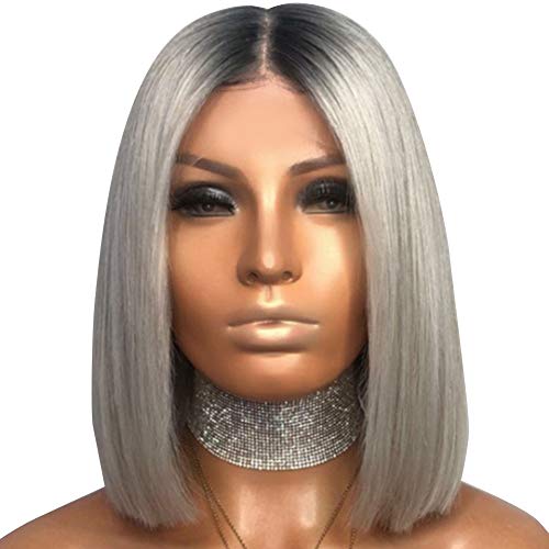 Parrucche corte Bob - Parrucca diritta argento sfumato Resistente al calore Parrucca sintetica per Halloween con vestito sintetico alla moda