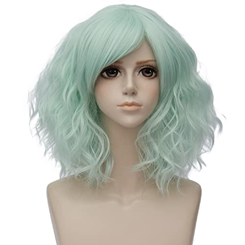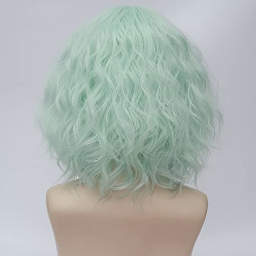 Parrucche corte corte verde parrucca per donne con frangia Bob parrucche sintetiche per cosplay per feste di Halloween uso quotidiano (verde chiaro)