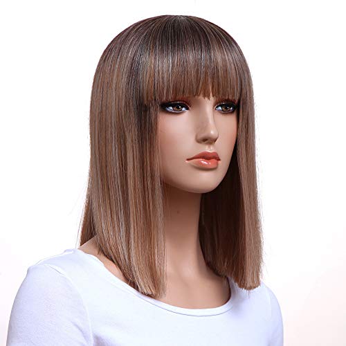 Parrucche diritte BOB con Bang per le donne Moda popolare Colore Parrucche sintetiche Resistenti al calore Buona garanzia